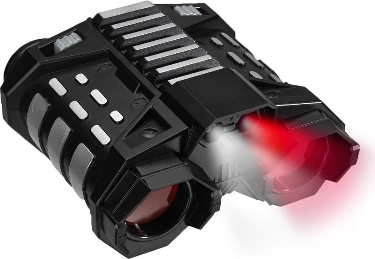 De Night Nocs van SpyX is onmisbaar op elke missie! Het is een verrekijker die je overdag en ’s nachts kan gebruiken voor al je geheime missies. Dankzij het sterke ontwerp kunnen ze al je missies aan. De verrekijker vergroot tot wel 2.5 keer. Zet het lampje boven je verrekijker aan dat tot wel 7.6 meter ver schijnt. Schakel over naar de stealth modus door het rode lampje aan te zetten in plaats van het witte. Batterijen: 2x AA, niet inbegrepen. Geschikt vanaf 6 jaar.