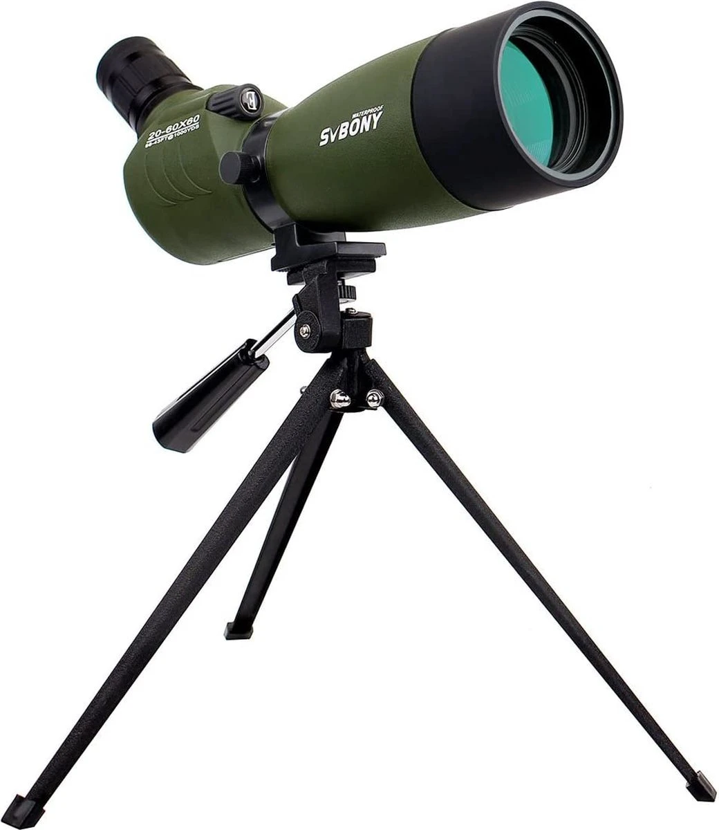 De Svbony SV14 Spotting Scope is een hoogwaardige telescoop ontworpen voor natuurliefhebbers, vogelspotters en iedereen die de wereld om zich heen in detail wil verkennen. Met een krachtige 20-60x zoom en een 60mm objectieflens biedt deze spotting scope heldere, scherpe beelden over een breed veld.
