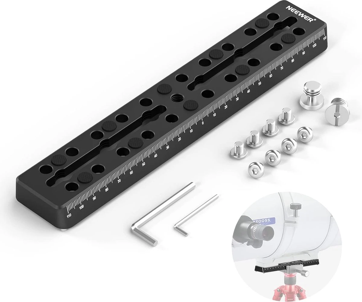 Verpakkingsinhoud Neewer 9″/230mm Rail Bar Vixen Style Dovetail Plate