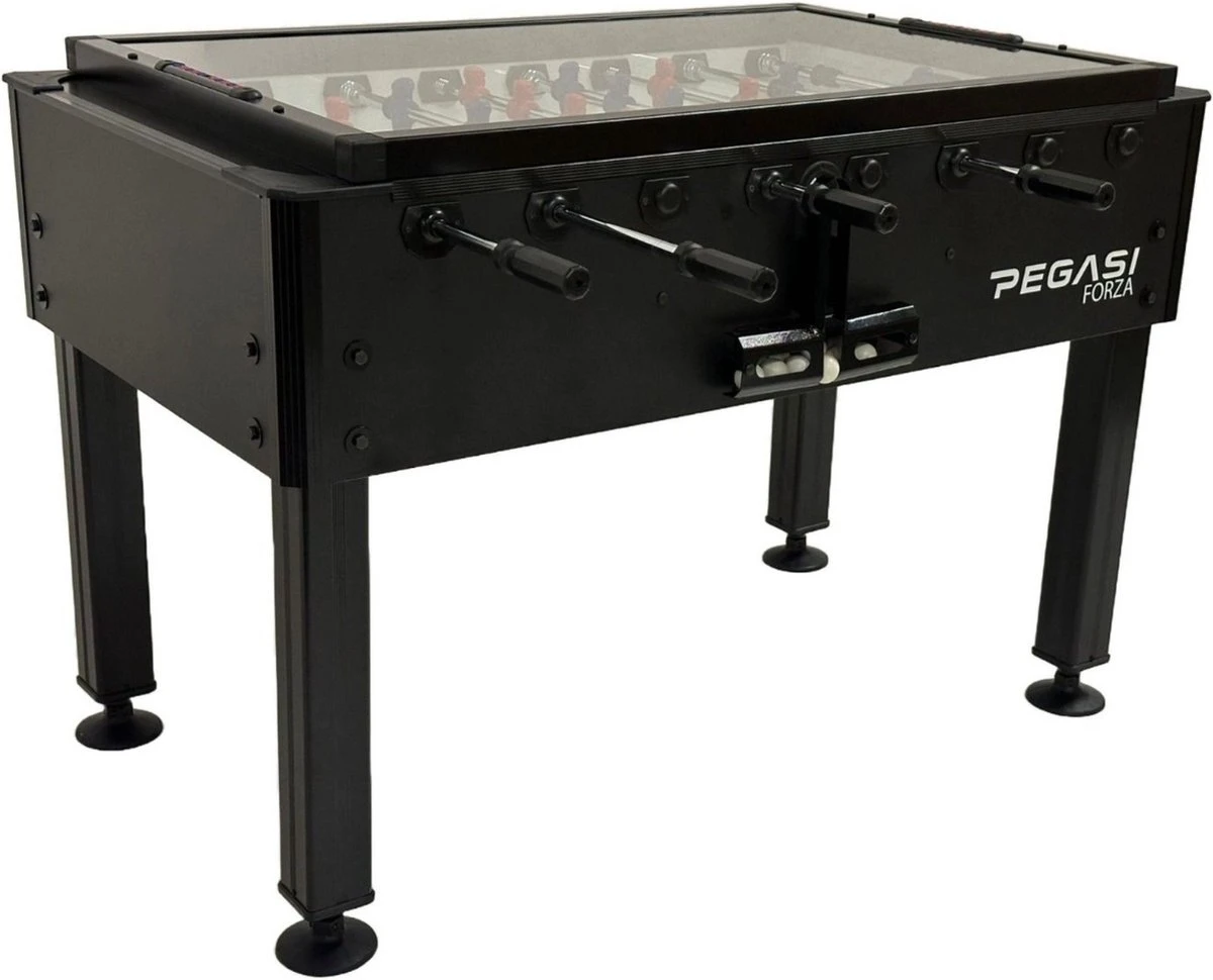 Pegasi Voetbaltafel Forza Pro Black Professional line – Kickertafel – Voetbaltafel – Telescoop stangen – Incl. 10 tafelvoetballen – Met glasplaat – Kunststof
